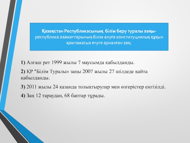 қазақ ұлттық университеті Кафедра:Биофизика және биомедицина Факультет:Биология және биотехнология ББП 17-02 Тақырыбы: 1.Білім беру заңы 2.Басқару және менеджмент Орындаған:Сәмет Ұ.С.