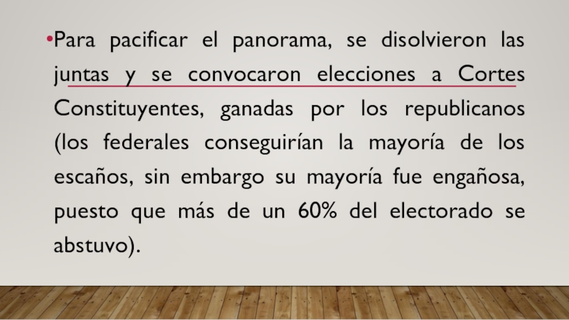 Слайд 4Para pacificar el panorama, se disolvieron las juntas y se