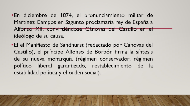 Слайд 11En diciembre de 1874, el pronunciamiento militar de Martínez Campos