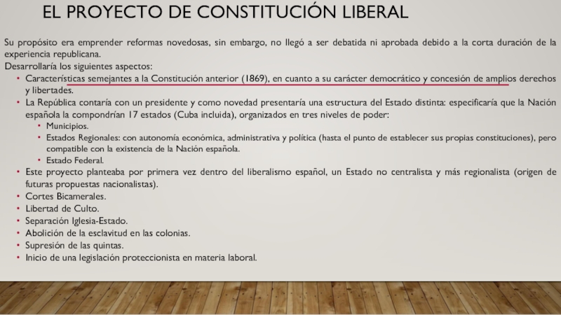 Слайд 6El proyecto de constitución liberal