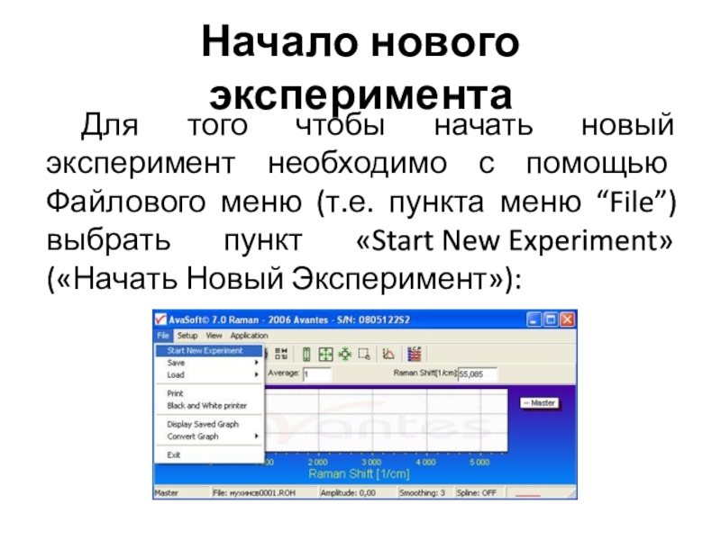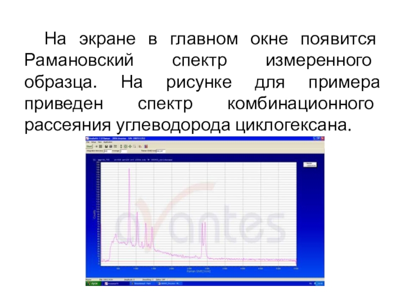 Слайд 19На экране в главном окне появится Рамановский спектр измеренного образца.