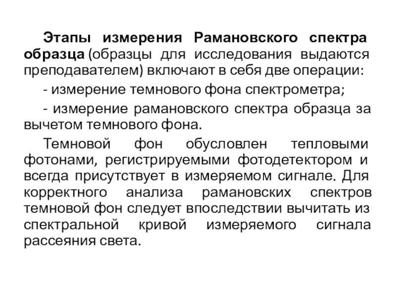 Слайд 16Измерение темнового фона для Рамановских спектров образцов