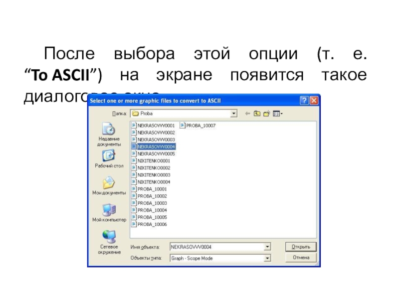 Слайд 26После выбора этой опции (т. е. “To ASCII”) на экране появится