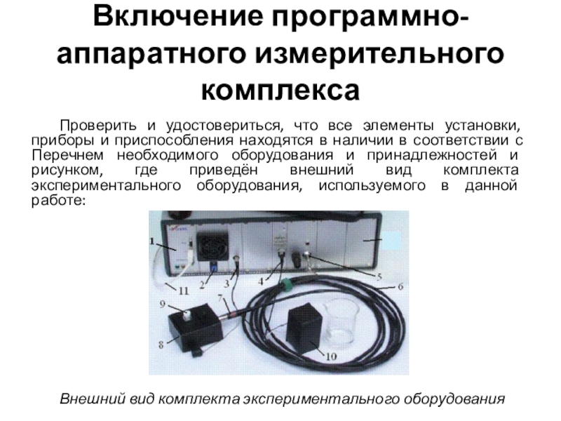 Слайд 4Включение программно-аппаратного измерительного комплекса