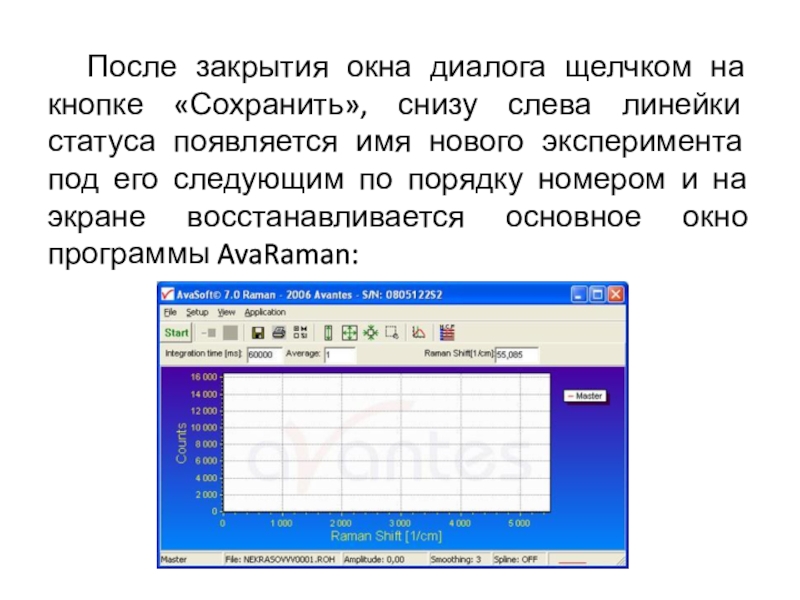 порядку номером и на экране восстанавливается основное окно программы AvaRaman: