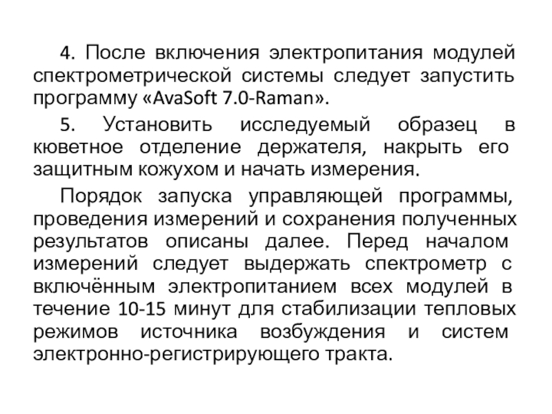 Слайд 94. После включения электропитания модулей спектрометрической системы следует запустить программу