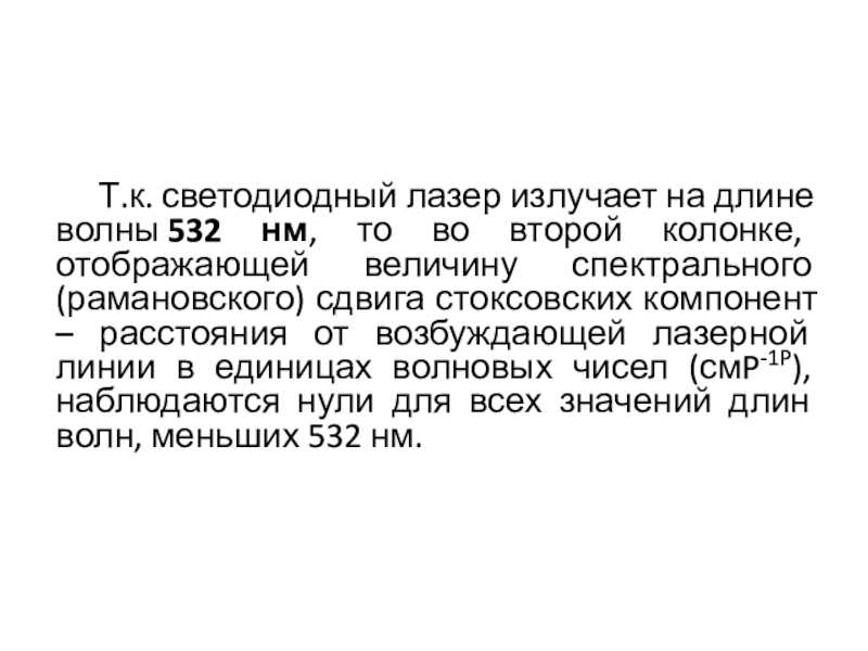 Слайд 30Т.к. светодиодный лазер излучает на длине волны 532 нм, то во