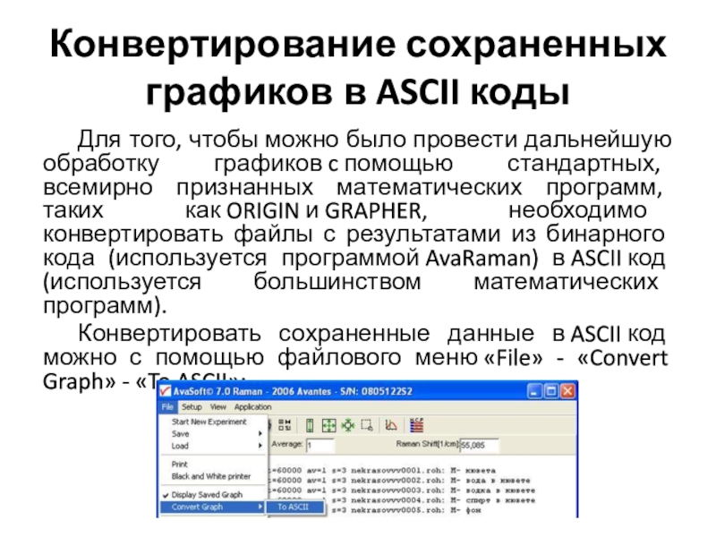 Слайд 25Конвертирование сохраненных графиков в ASCII коды