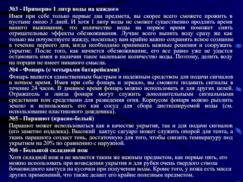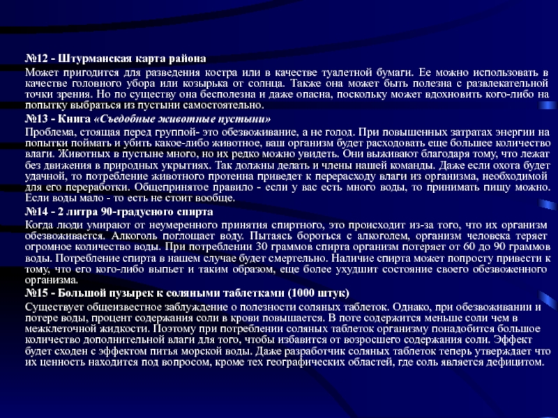 убора или козырька от солнца. Также она может быть полезна с развлекательной точки зрения. Но по существу она бесполезна и даже опасна, поскольку может вдохновить кого-либо на попытку выбраться из пустыни самостоятельно.