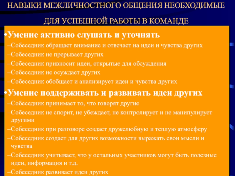 Слайд 21НАВЫКИ МЕЖЛИЧНОСТНОГО ОБЩЕНИЯ НЕОБХОДИМЫЕ ДЛЯ УСПЕШНОЙ РАБОТЫ В КОМАНДЕ