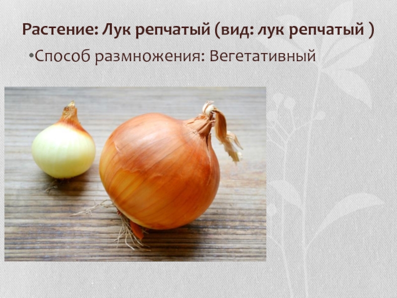 Растение: Лук репчатый (вид: лук репчатый )Способ размножения: Вегетативный