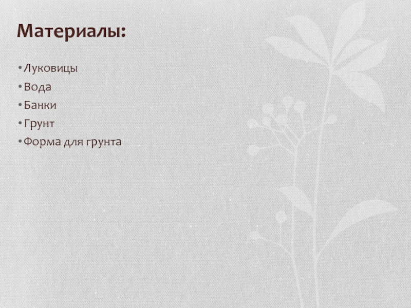 Материалы:ЛуковицыВодаБанкиГрунтФорма для грунта