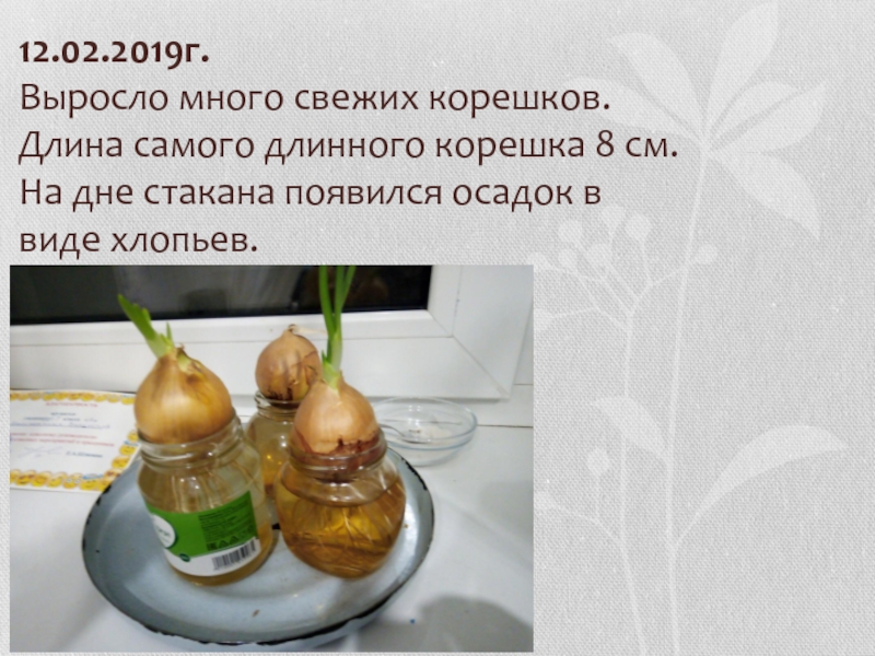 Слайд 712.02.2019г. Выросло много свежих корешков. Длина самого длинного корешка 8