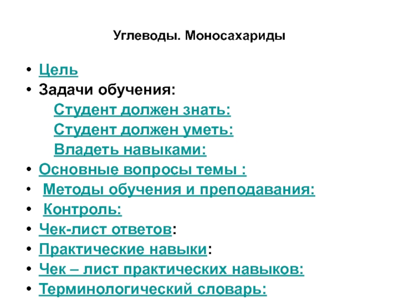 Изомерия моносахаридов (стереоизомерия, цикло–, оксо-таутомерия, конформации).