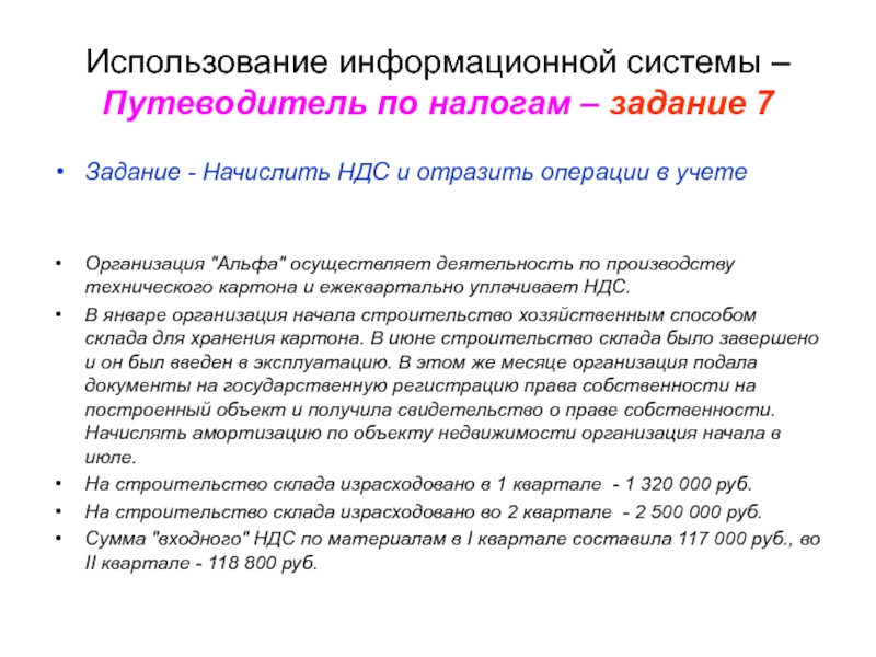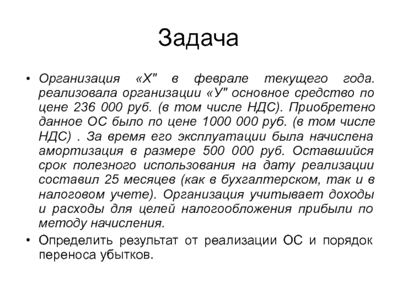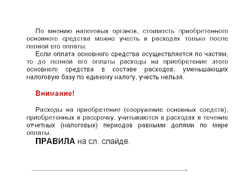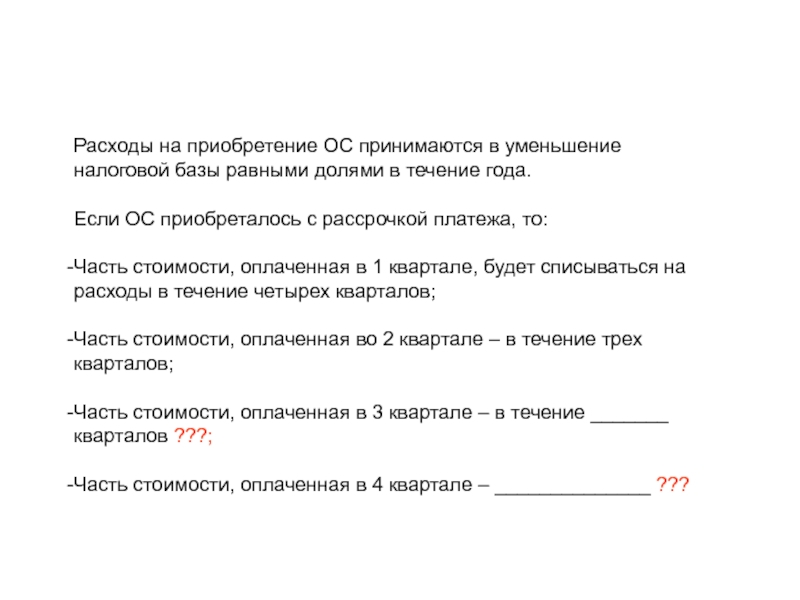 Слайд 76Расходы на приобретение ОС принимаются в уменьшение налоговой базы равными