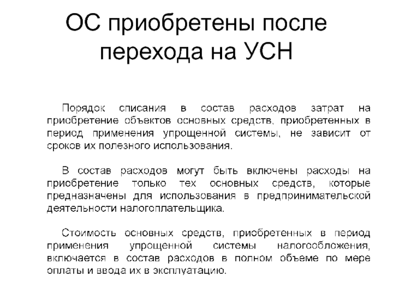 Слайд 73ОС приобретены после перехода на УСН