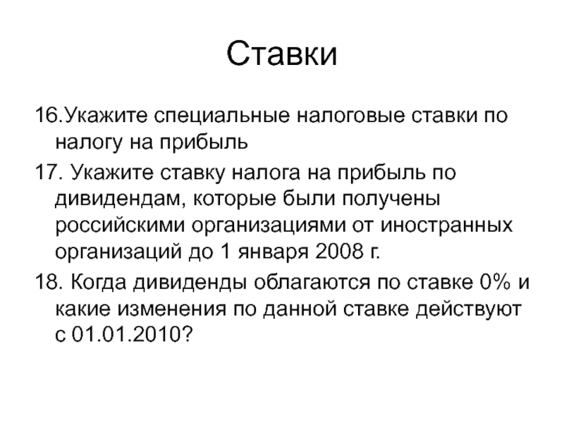 18. Когда дивиденды облагаются по ставке 0% и какие изменения по данной ставке действуют с 01.01.2010?