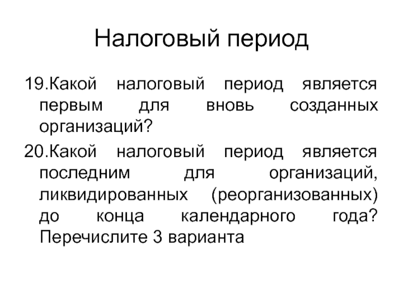 19.Какой налоговый период является первым для вновь созданных организаций?