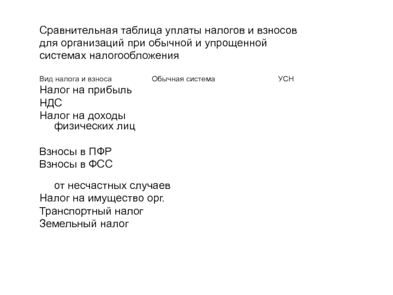 Слайд 68Сравнительная таблица уплаты налогов и взносов