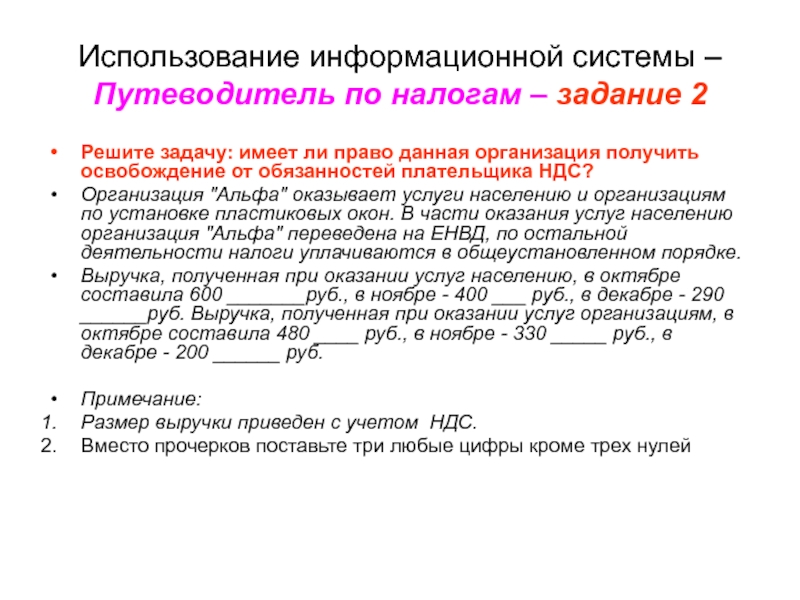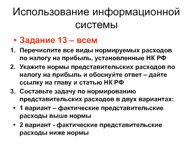 Составьте задачу по нормированию представительских расходов в двух вариантах: