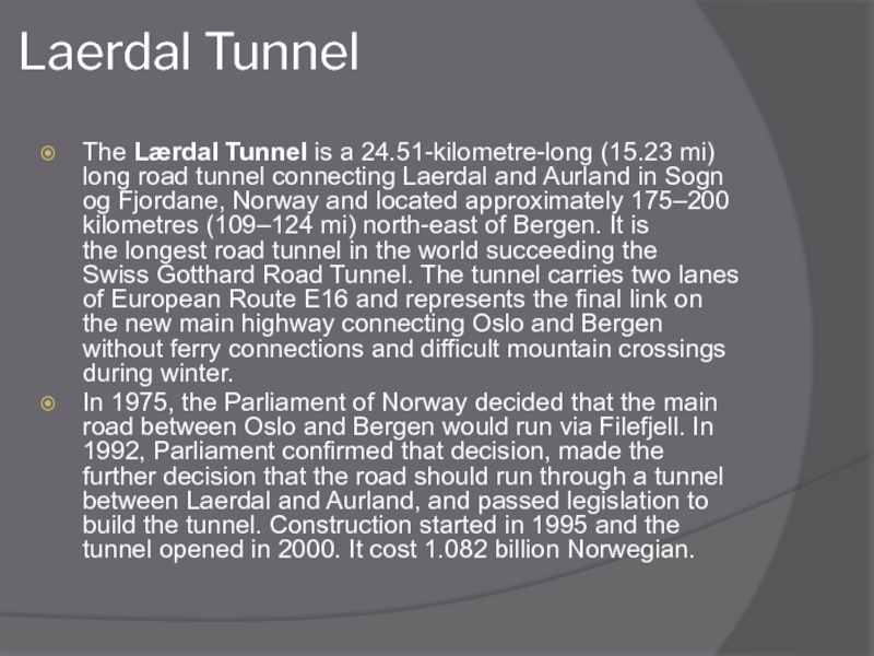 Слайд 4Laerdal Tunnel