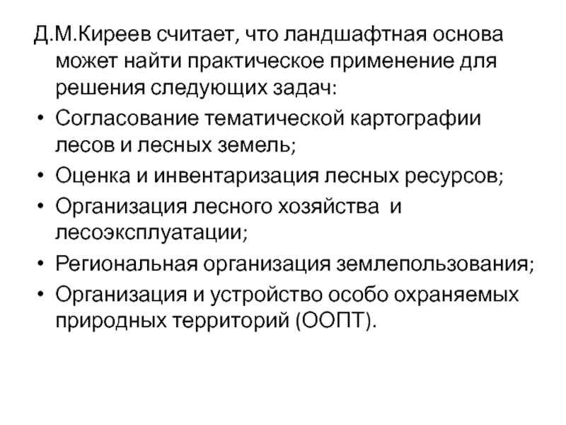 Слайд 27Д.М.Киреев считает, что ландшафтная основа может найти практическое применение для