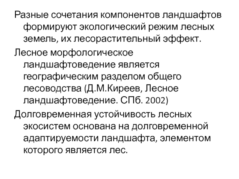 Лесное морфологическое ландшафтоведение является географическим разделом общего лесоводства (Д.М.Киреев,
