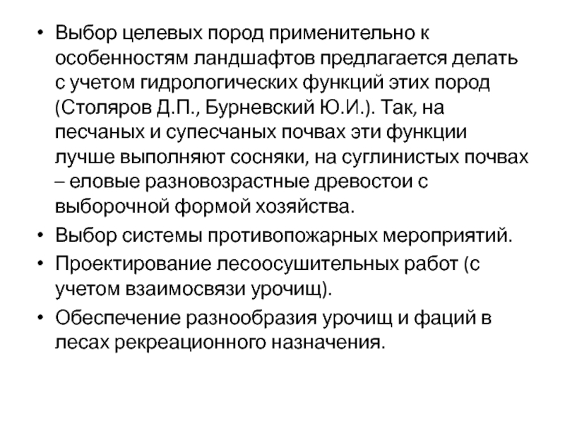 Слайд 18Выбор целевых пород применительно к особенностям ландшафтов предлагается делать с