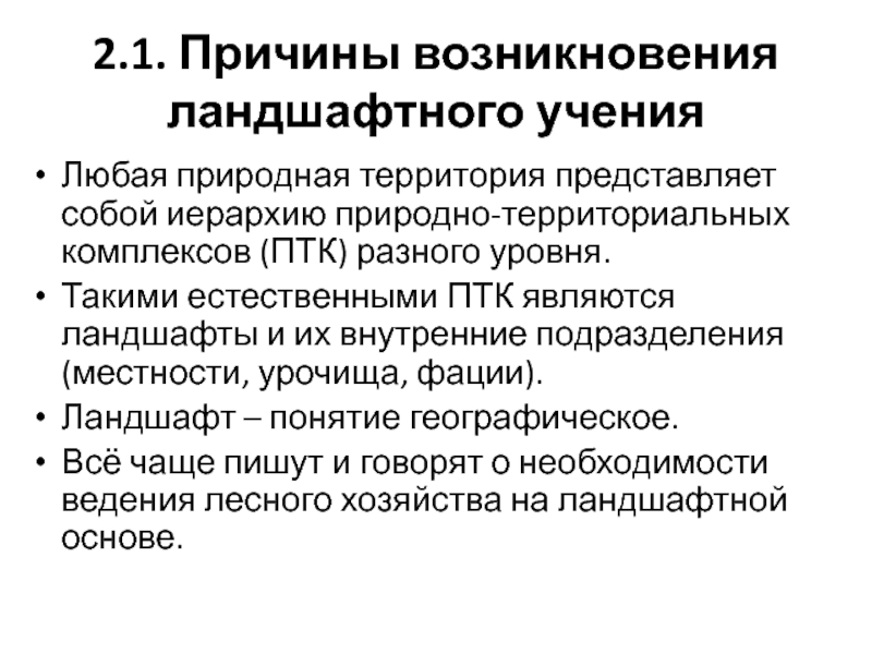 Слайд 22.1. Причины возникновения ландшафтного учения