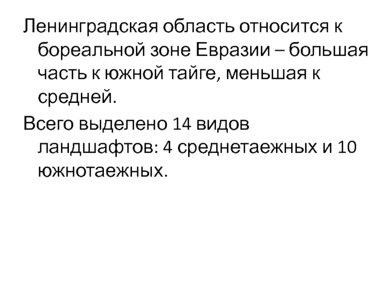 Слайд 30Ленинградская область относится к бореальной зоне Евразии – большая часть