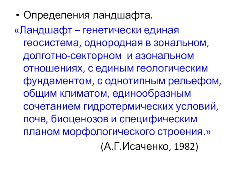 «Ландшафт – генетически единая геосистема, однородная в зональном, долготно-секторном