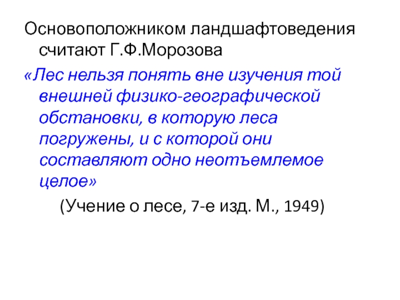 Слайд 3Основоположником ландшафтоведения считают Г.Ф.Морозова