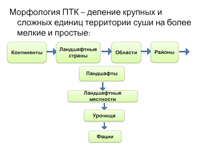 Слайд 9Морфология ПТК – деление крупных и сложных единиц территории суши