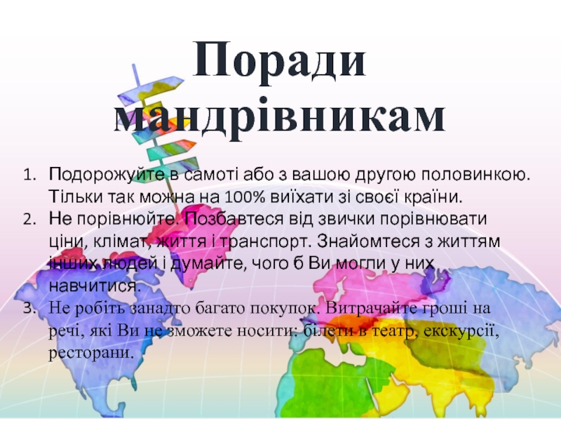 Слайд 7Поради мандрівникам