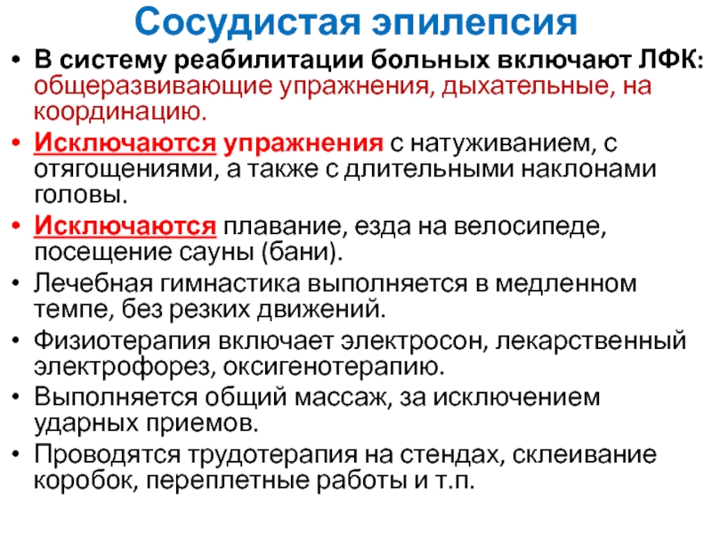 Исключаются упражнения с натуживанием, с отягощениями, а также