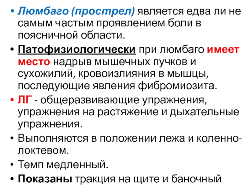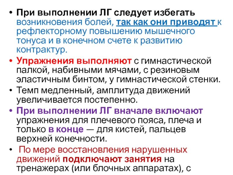 Слайд 38При выполнении ЛГ следует избегать возникновения болей, так как они