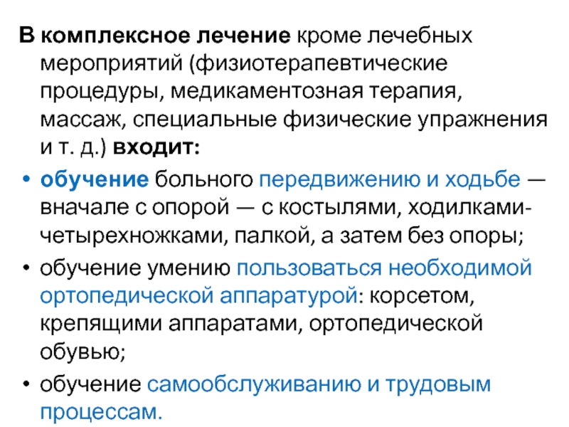 Слайд 3В комплексное лечение кроме лечебных мероприятий (физиотерапевтические процедуры, медикаментозная терапия,