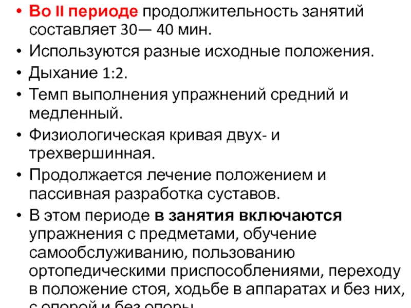 Слайд 5Во II периоде продолжительность занятий составляет 30— 40 мин.
