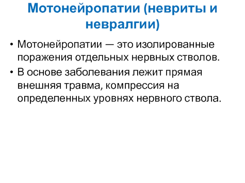 Слайд 21Мотонейропатии (невриты и невралгии)
