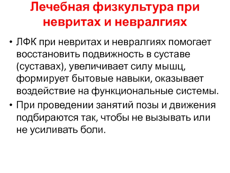 Слайд 35Лечебная физкультура при невритах и невралгиях