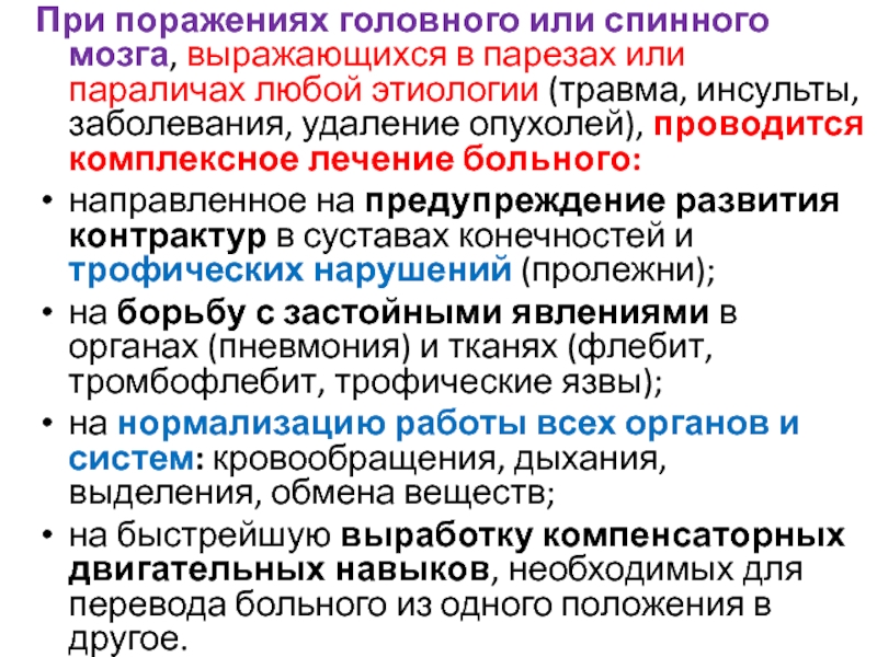 параличах любой этиологии (травма, инсульты, заболевания, удаление опухолей), проводится комплексное