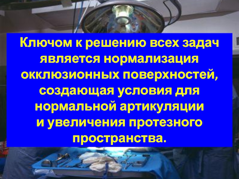 Ключом к решению всех задач является нормализация окклюзионных поверхностей, создающая условия для нормальной артикуляции и увеличения протезного
