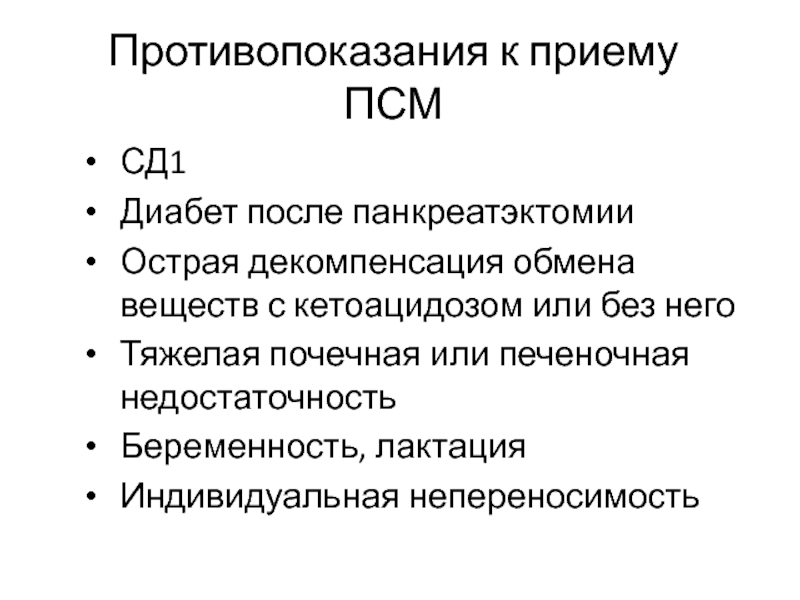 Слайд 29Противопоказания к применению агонистов ГПП-1