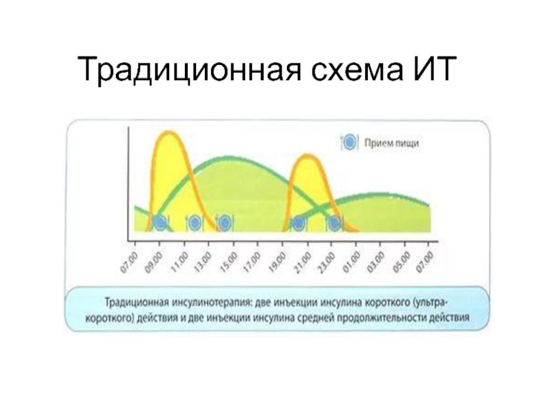 Традиционный: с фиксированными диетой, дозой и временем введения инсулина.