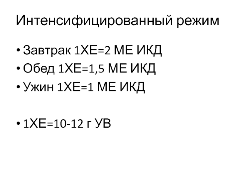 Интенсифицированный: с либерализованной диетой, учетом количества потребляемых УВ,