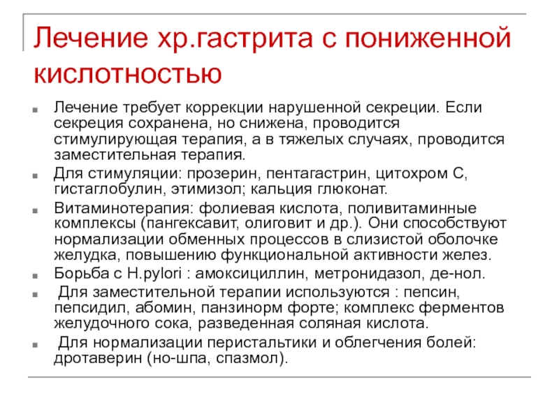 Слайд 12Лечение хр.гастрита с пониженной кислотностью