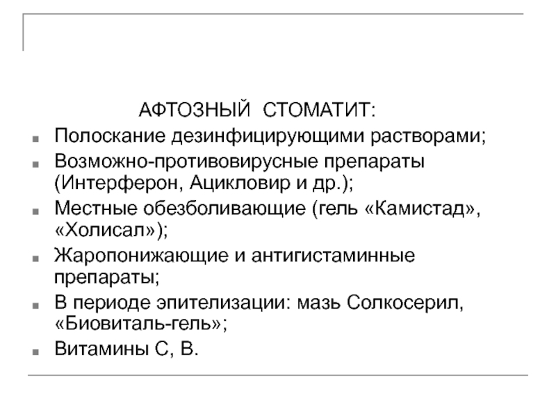 Слайд 2 Лечение стоматитов