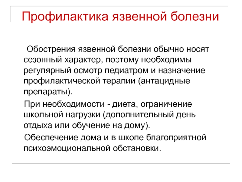 профилактической терапии (антацидные препараты).