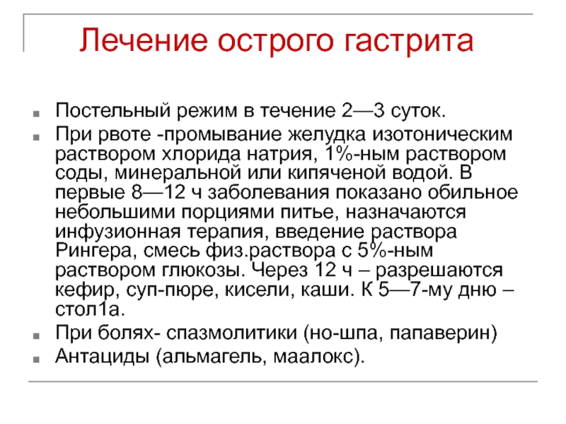 Слайд 7 Лечение острого гастрита
