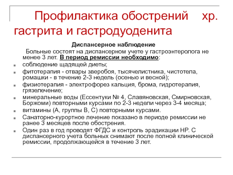Слайд 13 Профилактика обострений хр.гастрита и гастродуоденита